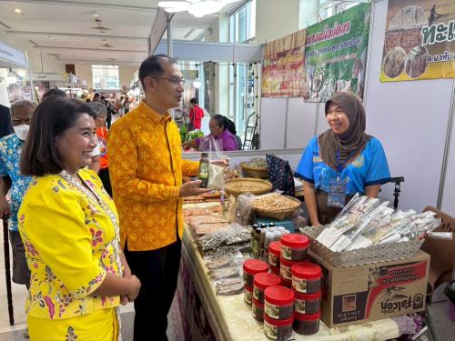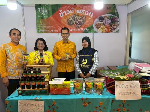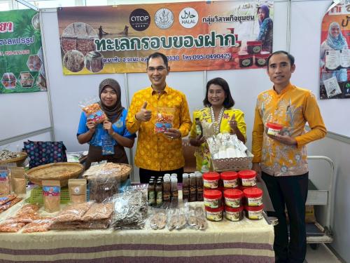 ✨ บรรยากาศภายในงานเป็นไปอย่างคึกคัก โดยนายอำเภอจะนะ ยังได้เดินเยี่ยมชมบูธ และให้กำลังใจผู้ผลิต ผู้ประกอบการ OTOP จากอำเภอจะนะ ทั้ง 6 กลุ่ม (5 บูธ) ดังนี้